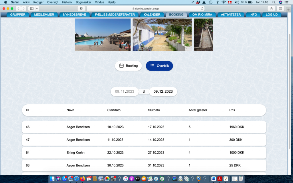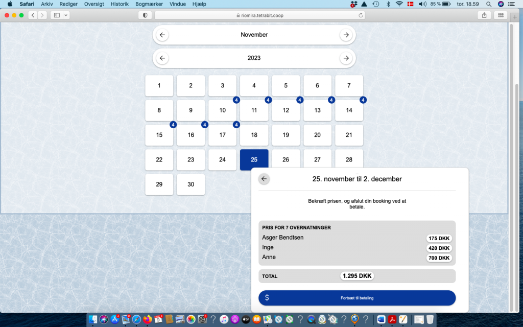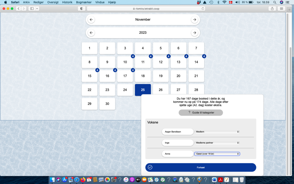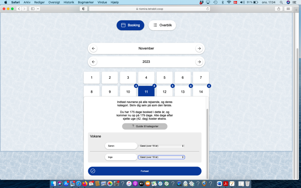 Tilføj gæster, der ikke er i hele din periode: book igen på en dato(er), ændre dit navn til navn på gæst, kategoriser og betal. I oversigten står dine gæster stadig sammen med dig.