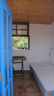 Et kig ind i et af værelserne i Galinhas med udsigt over Mesinha dalen.